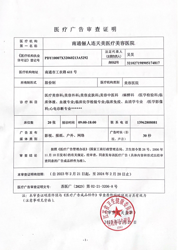 南通儷人連天美醫療美容醫院分為兩大科室,整形美容科和皮膚美容科。參與社會公益實踐活動主要是在幫助他人、服務社會的過程中開闊視野、提升能力和完善自我。